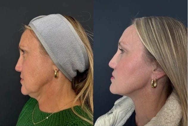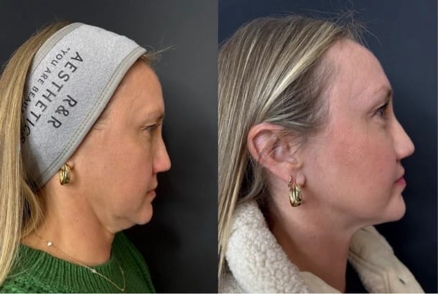 Full Face Rejuvenation with filler: Before and After of a woman's transformation at R & R Aesthetics, Roswell, Georgia.